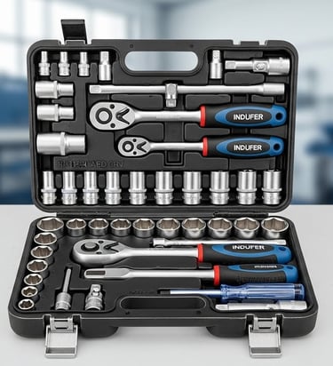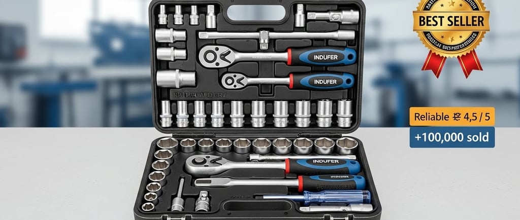 Descubra o kit jogo de chave catraca soquete 46 peças Indufer, ideal para manutenção de carro, moto e uso doméstico. Fabricado em aço CRV, oferece durabilidade e praticidade em um estojo organizado. Mais de 100 mil unidades vendidas e avaliação 4,5 estrelas!