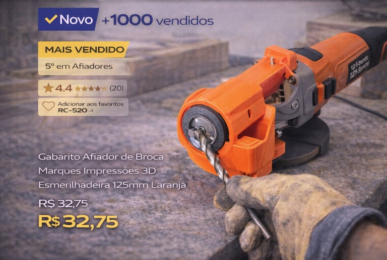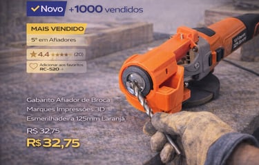 Ei, amigo, se você está procurando uma solução prática para manter suas brocas afiadas e prontas para o trabalho, eu tenho algo que pode te ajudar. O Gabarito Afiador de Broca Marques Impressões 3D para Esmerilhadeira 125mm Laranja é um daqueles produtos que facilitam a vida de quem lida com ferramentas no dia a dia. Com mais de 1.000 unidades vendidas e uma avaliação média de 4.4 estrelas baseada em 20 opiniões reais, ele se destaca como o mais vendido na categoria. Se você quer economizar tempo e dinheiro evitando comprar brocas novas toda hora,