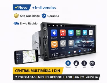 Modernize seu carro com a central multimídia 1 din de 7 polegadas. Conectividade total, bluetooth, mirrorlink e excelente custo-benefício. Ideal para quem busca entretenimento e praticidade no dia a dia.