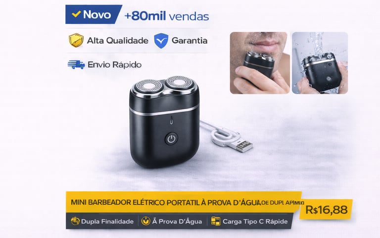 Se isso soa familiar, o Mini Barbeador Elétrico Portátil À Prova d'Água pode ser exatamente o que você estava procurando. Com mais de 80 mil unidades vendidas e preço acessível de R$16,88, ele se tornou o favorito de milhares de homens que valorizam praticidade sem abrir mão da qualidade.