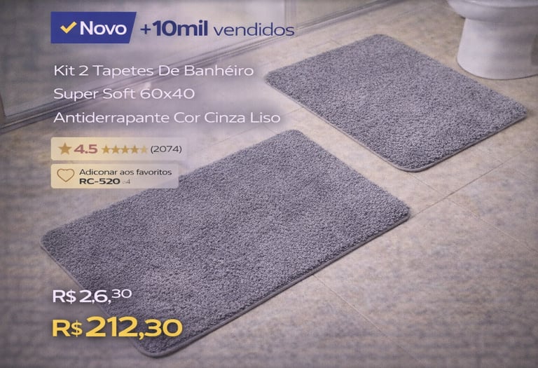 Se você está procurando uma solução simples e eficaz para tornar seu banheiro mais confortável e seguro, sem gastar muito, eu recomendo dar uma olhada no Kit 2 Tapetes de Banheiro Super Soft 60x40 Antiderrapante Cor Cinza Liso. Com mais de 10 mil unidades vendidas e uma avaliação média de 4.5 estrelas baseada em 2074 opiniões reais de clientes, esse produto é uma escolha confiável.